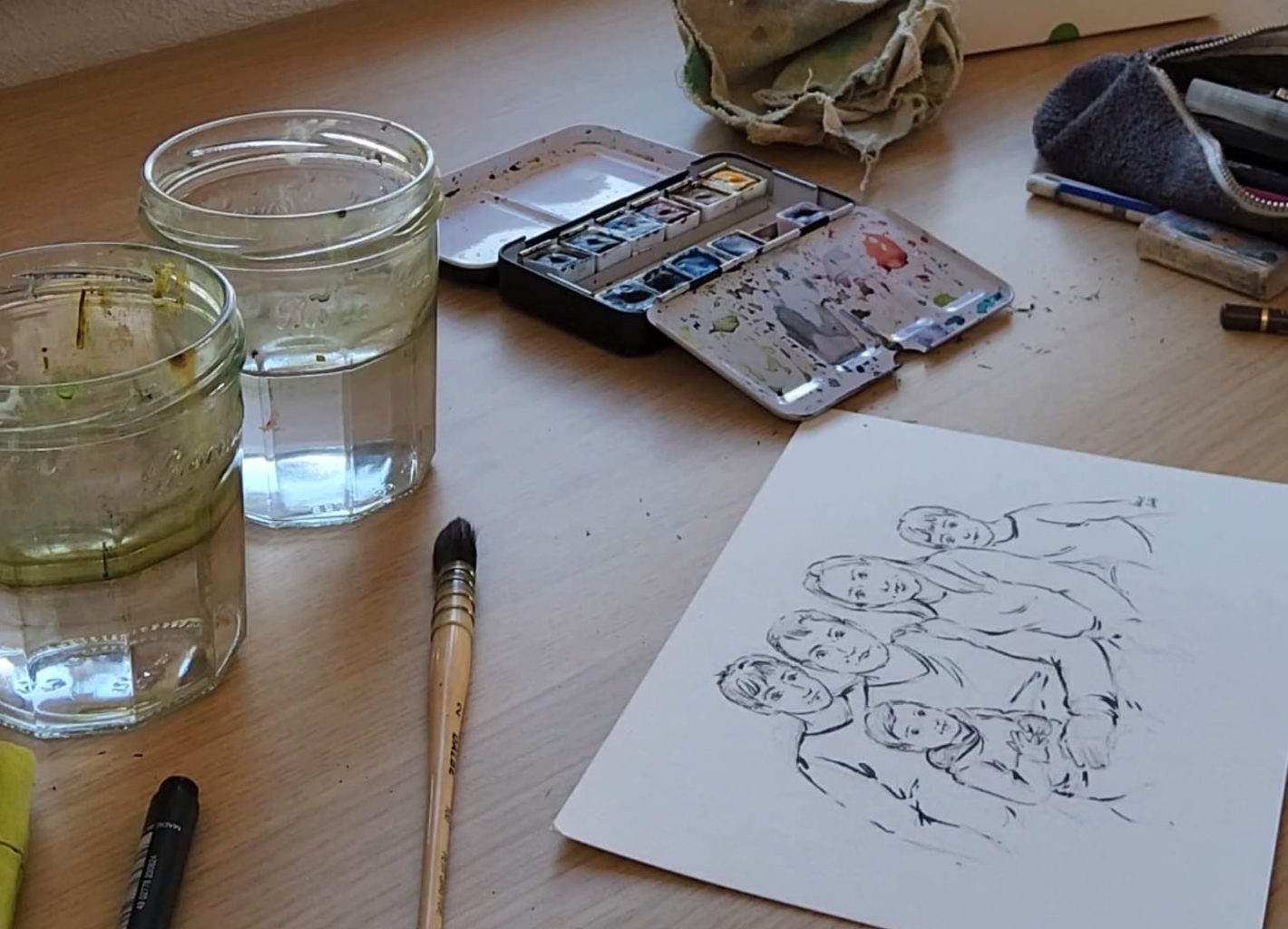 Je réalise des portraits « croqués » d’après photos.