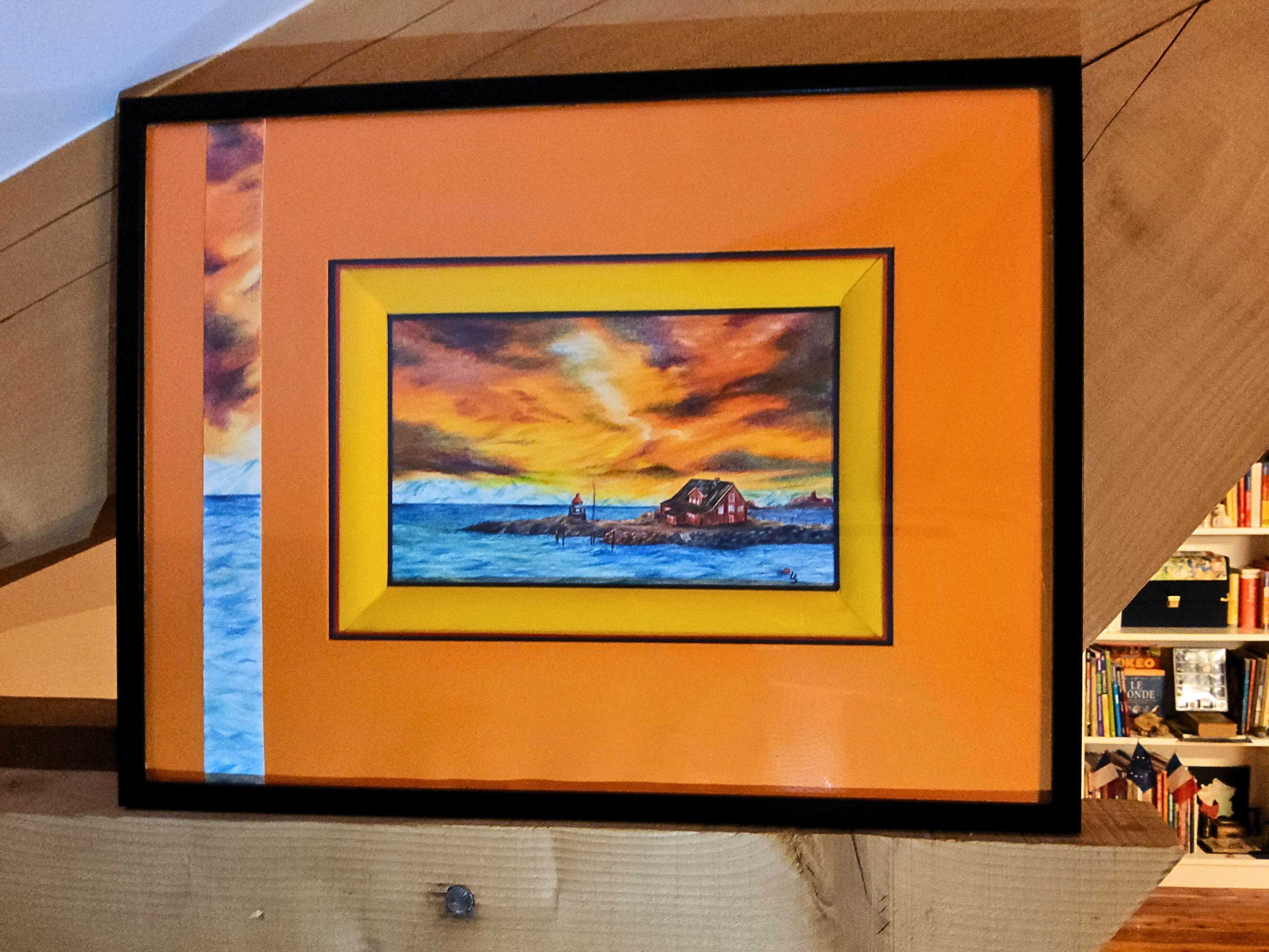 Réalisation au crayon de couleur sur papier 200gr et encadrement avec biseaux à la française.